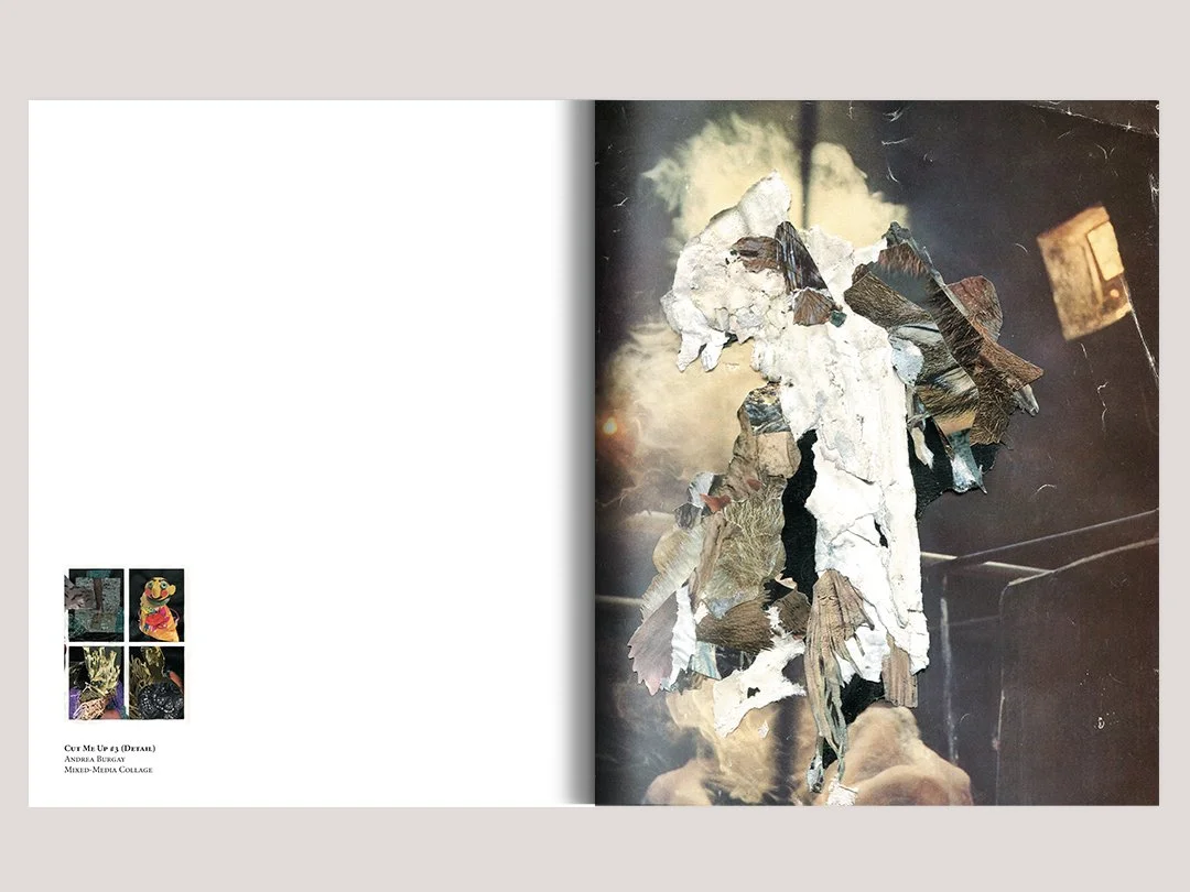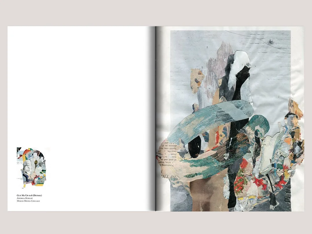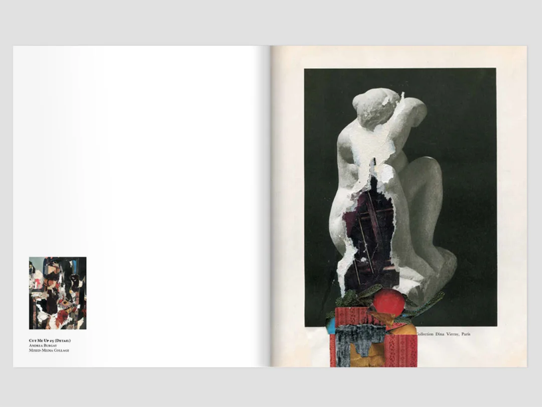 The first call consists of eighteen original collages created for the inaugural issue by Andrea Burgay. They are an offering to be considered, absorbed, and then deconstructed by cutting, modifying, or transforming them, and using them to make new works. Response artworks will form the second issue of Cut Me Up.