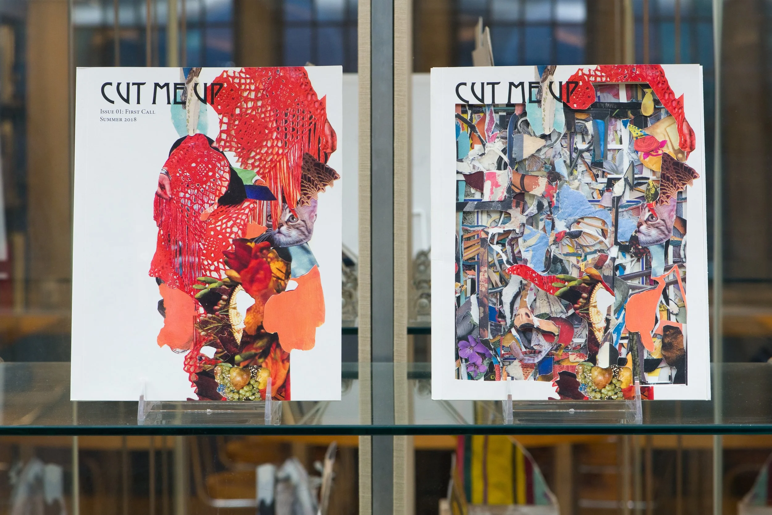 Cut Me Up: Transitions highlights works from the 14 published issues of Cut Me Up Magazine, illustrating the multi-layered conversations that that emerge as artists transform and respond to one another’s work. Using the physical magazine and each issue’s curatorial prompt as a starting point, artists deconstruct, reimagine, and reconstruct the published artworks into entirely new creations.